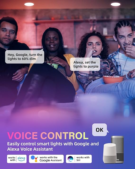 - 【Voice Control】 The smart recessed lighting 6 inch compatible with Alexa and Google Assistant. Control your recessed light with the sound of your voice using your Alexa and Google Assistant, making your life a whole lot easier, perfectly hands -free.