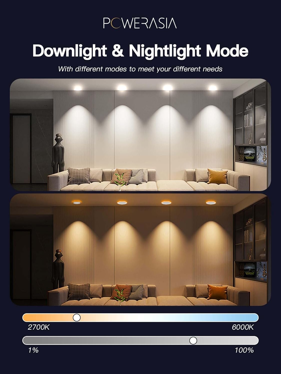 - 【Variety of Colors & Brightness】 The 6 inch smart recessed downlight supports warm white and cool white from 2700K to 6000K. Provide 16 million colors.